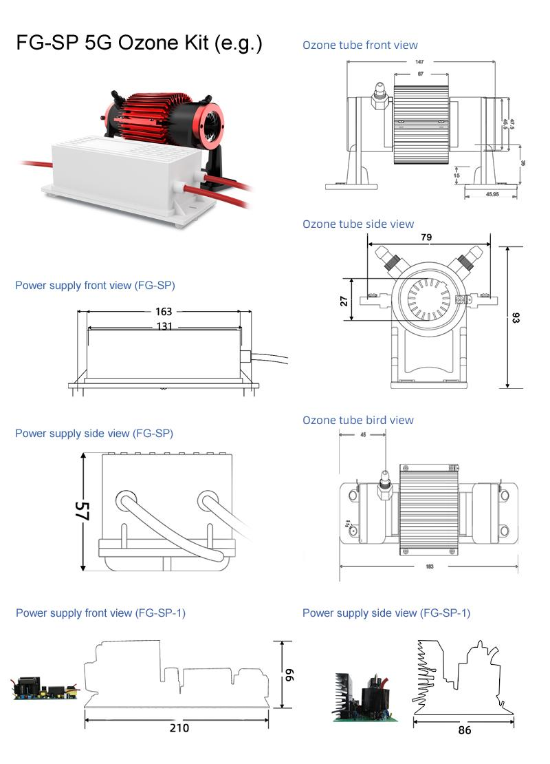 Tamaño del tubo de ozono | milímetros | 125*50*50mm | 165*85*93 milímetros | 185*85*93 milímetros | 215*85*93 milímetros |
